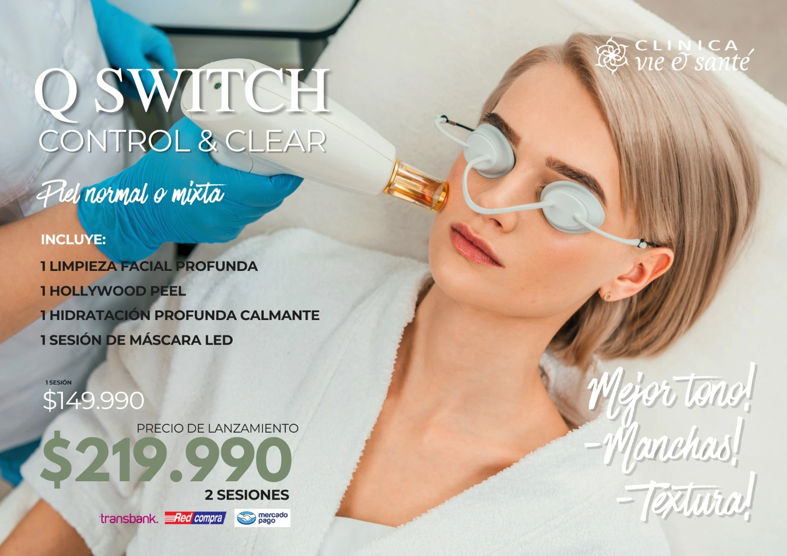 Devuelve la luminosidad y uniformidad a tu piel con nuestro exclusivo tratamiento Q Switch Control & Clear, diseñado especialmente para pieles normales y mixtas que buscan mejorar su tono, textura y apariencia general.